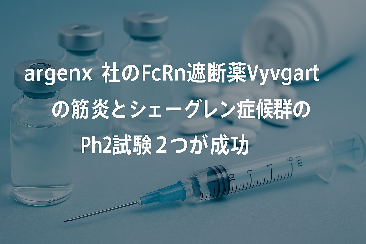 argenx社のFcRn遮断薬efgartigimod alfa(エフガルチギモド アルファ)静注(Vyvgart、ウィフガート)/皮下注(Vyvgart Hytrulo)の筋炎(特発性炎症性筋疾患)とシェーグレン症候群(SjD)相手のPh2試験2つで目当ての効果が認められました。 (5 段落, 753 文字)